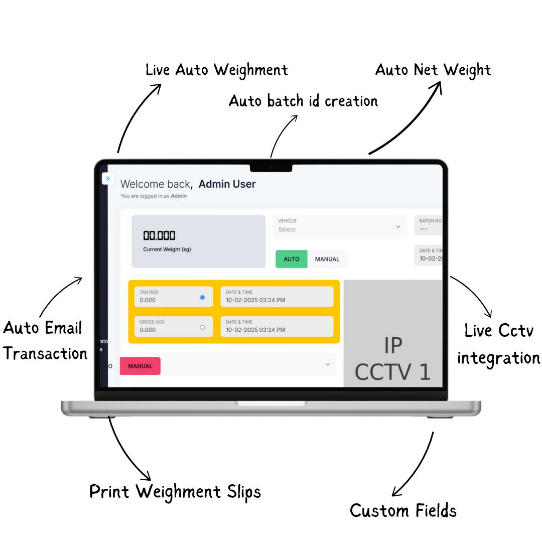 Batch Tracking – Logs every batch with date, time, operator ID, and scale details.